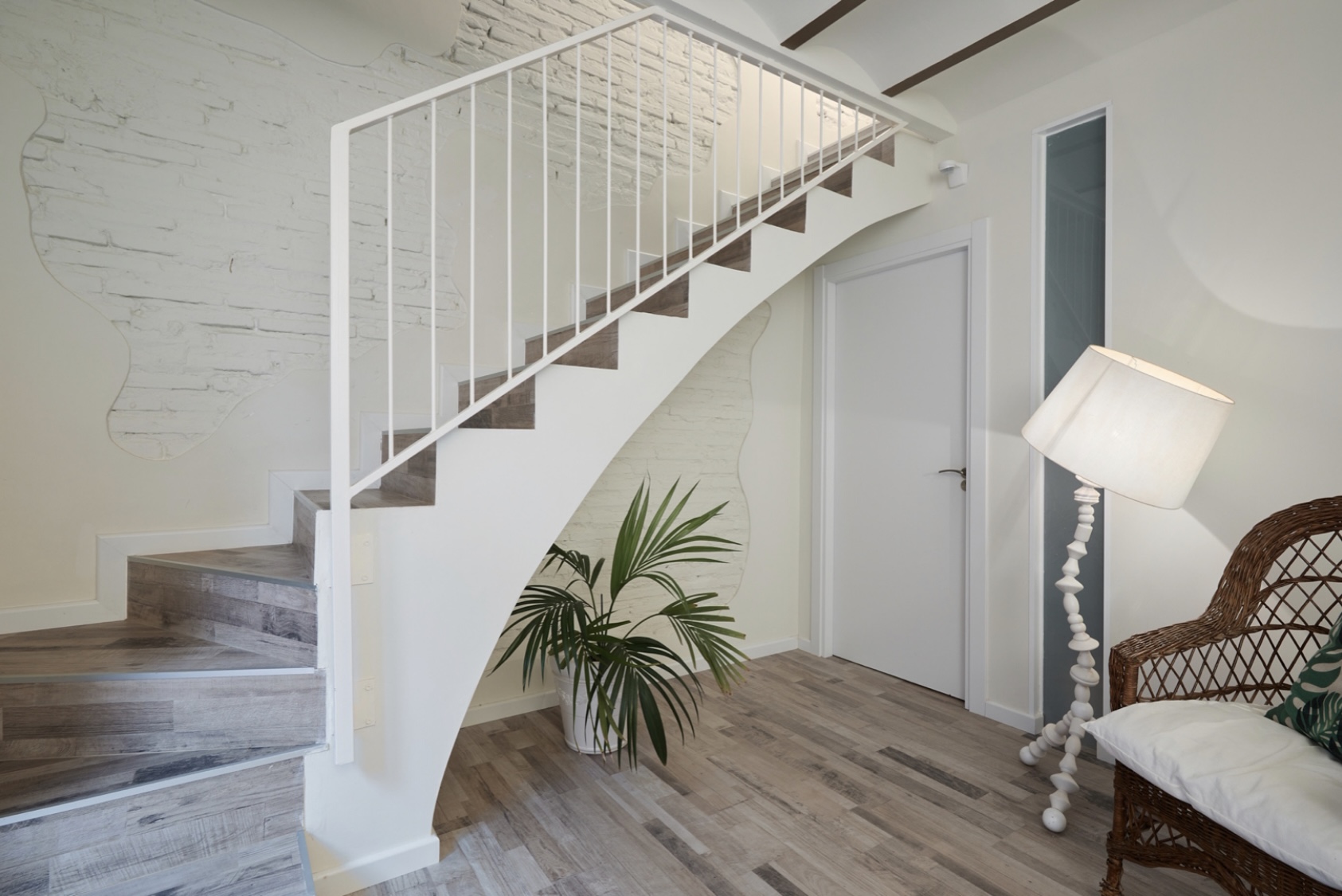 Mantiene la distribución original y ofrece tres espacios singulares, completamente distintos entre sí que ocupan respectivamente cada una de las plantas de la casa.