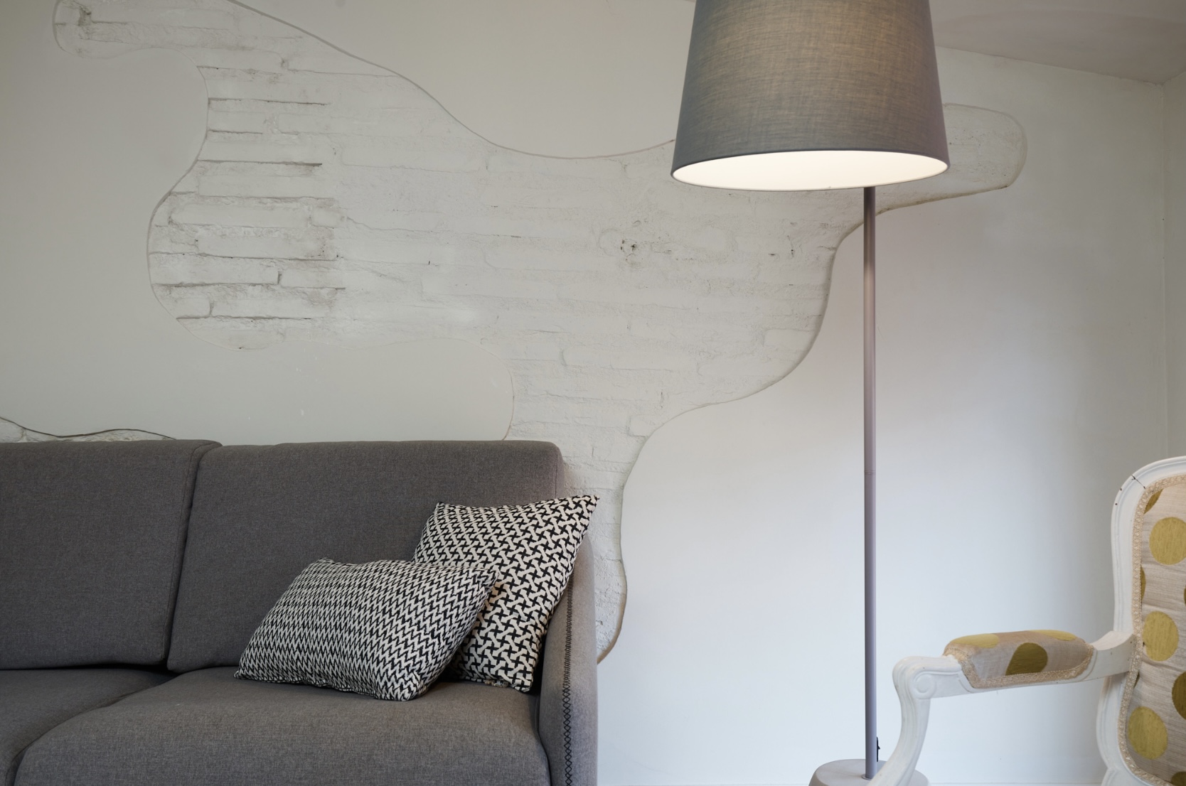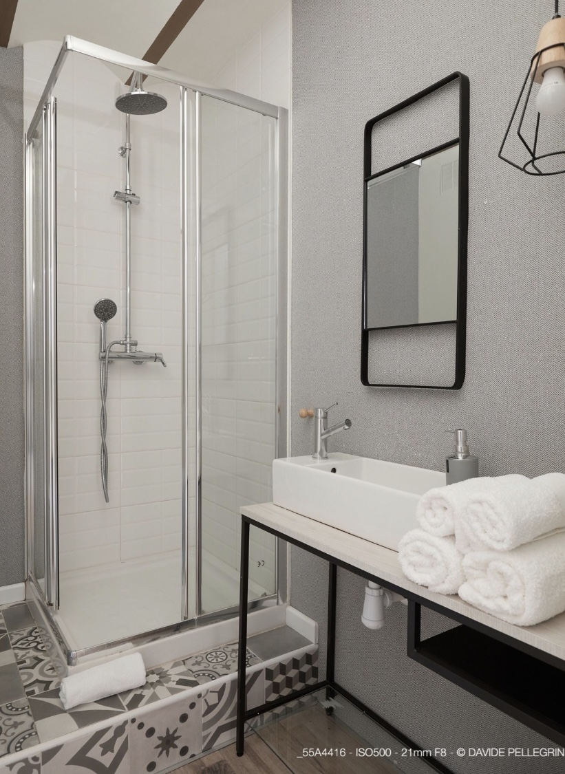 La suite Estándar ocupa la primera planta y tiene una superficie de 17 m2 con una ambientación más industrial.